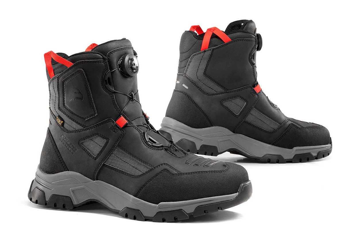 Falco Arrakis Stövel En fräck CE-godkänd touringkänga. Yttermaterial av ”Micro-Synth” ”High-Tex” membran som gör stövlarna helt vattentäta. Quick-reel stängning. ”D3O”-skydd för fotknölarna. ”ACF/men” anatomiskt utformad enligt de senaste rönen. Reflex i bakkant. Slitstark gummisula med bra grepp.