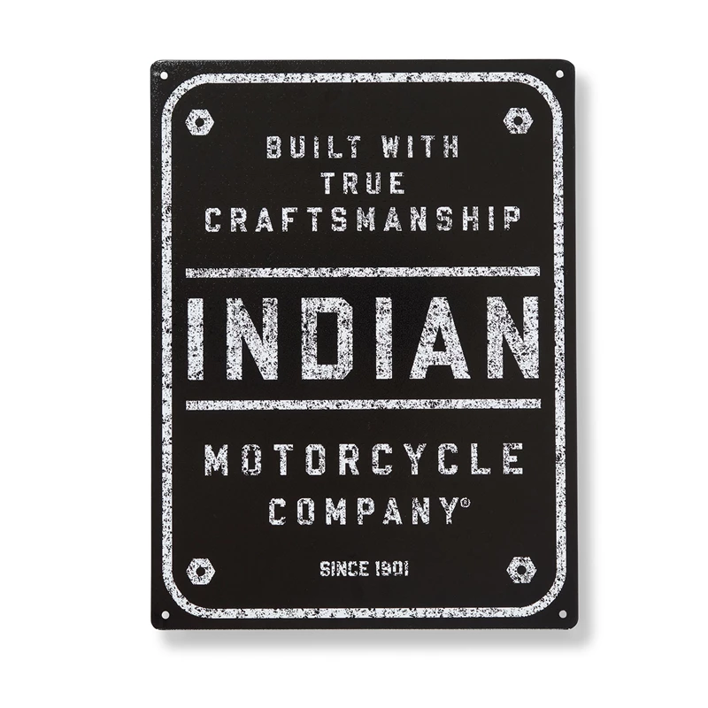 Indian Craftmanship Metal Sign 100% plåt med distressed vit text på svart bakgrund. Bulthuvuddetaljer i hörnen. Mått: 40 cm hög 30 cm bred.