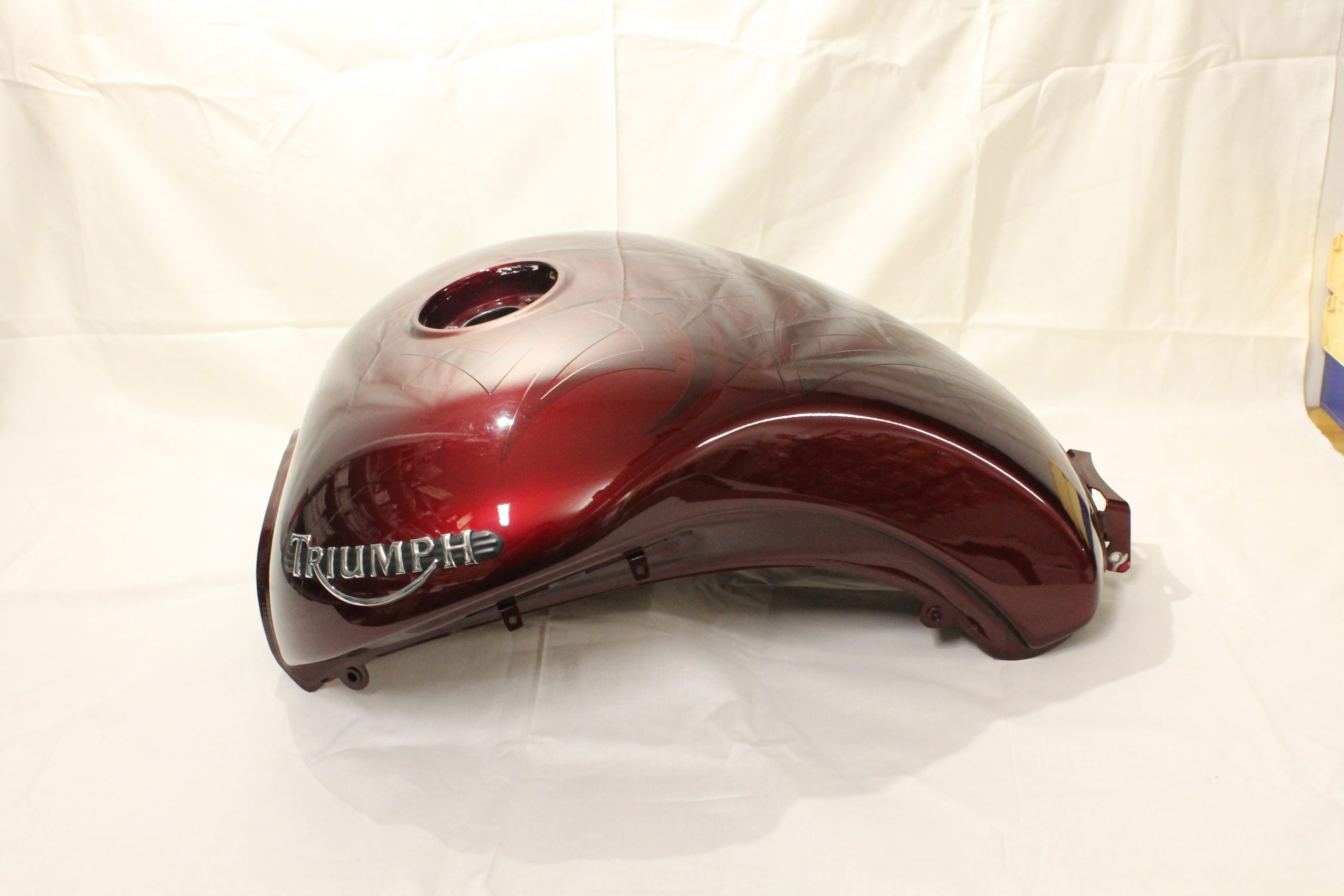 Triumph Rocket III Tank Röd med Tribaler Begagnad Tank till Triumph Rocket III Classic & Roadster 2006-2018 Liten luftbubbla i dekalen samt lite nedmattning i botten av tanken T2400601-CS