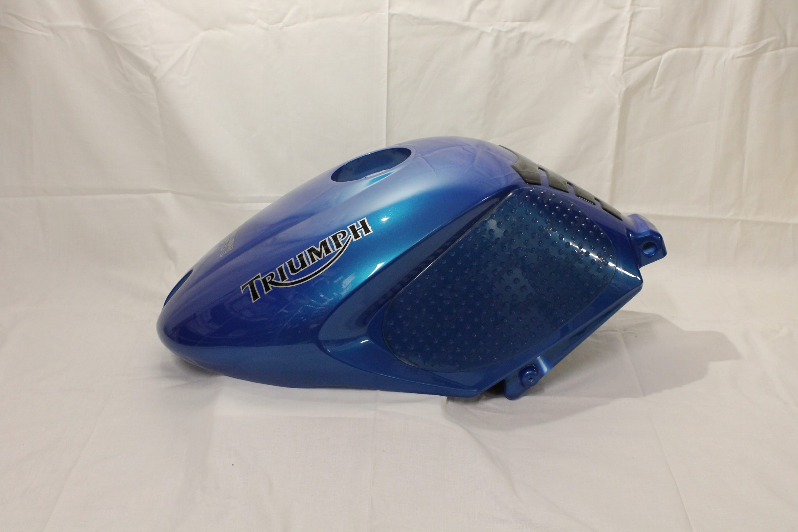 Triumph Speed Triple 1050 Tank Triumph Speed Triple 1050 Fuel tank Begagnad tank i Neon Blue med Tank pad samt stompgrip Väldigt fint skick, ett stenskott på höger sida Passar till Triumph Speed triple 1050 2005-2007 med plasttank T2400209-JO