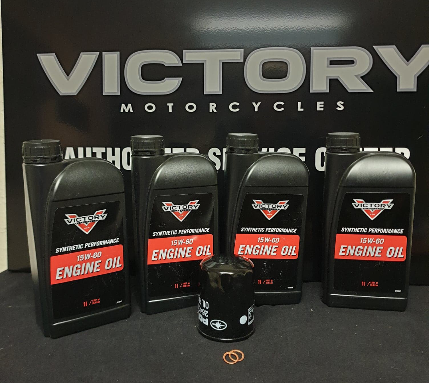 Victory Octane Servicekit Brons Ta hand om din Victory. Brons Service-kittet innehåller: 4 liter Victory-olja * 1 Oljefilter Original 2 kopparbricka Passar: Victory Octane 2016-2017 *Är Victory-oljan slut skickas Indian olja. Exakt samma olja endast olika etiketter på flaskan.